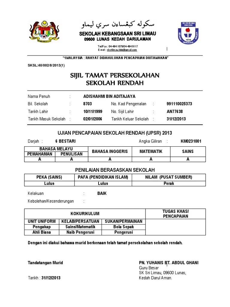Isu sistem salahlaku disiplin murid dan signifikannya terhadap sijil tamat sekolah pelajar. Tandatangan murid tandatangan pengetua tarikh: Sekolah menengah kebangsaan landas 21820 ajil terengganu sijil berhenti sekolah 1. Sjk (t) ramakrishna pulau pinang'. Download draft sijil berhenti sekolah download document.
